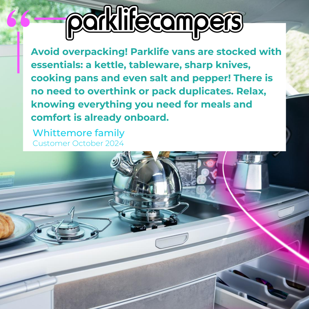 Are you ready to hit the road in a Parklife Campers van? Packing efficiently is key to a stress-free adventure, whether you’re travelling as a family or a couple. In this guide, we’ll walk you through the must-haves, space-saving tips and essential gear to ensure your campervan trip is comfortable and organized. Before you dive in, check out our Top 5 Reasons to Hire a Campervan in 2025 , 10 Must-Visit UK Destinations for Campervan Adventures in 2025 with Parklife Campers and our Google Map full of our TOP recommendations for inspiration!